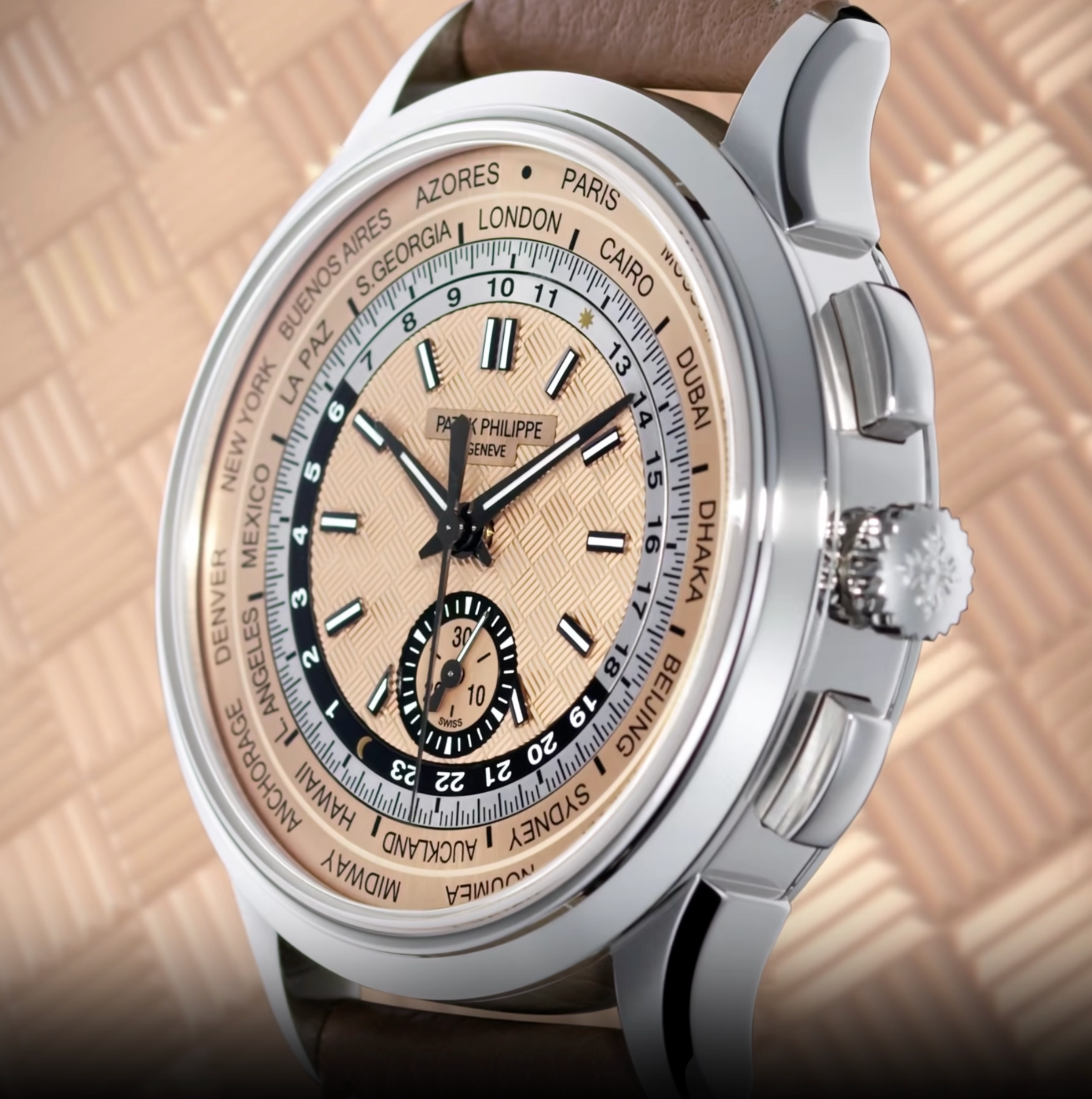 Patek Philippe World Time 5935A-001 Chronograph Stainless Steel Salmon Dial 41mm Men’s Watch