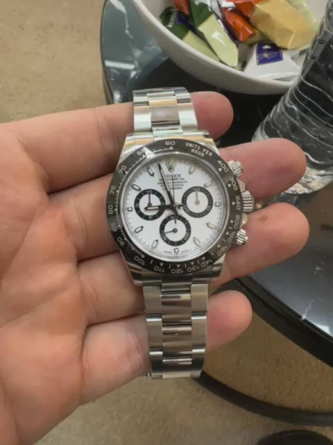 “The Rolex Daytona 116500LN WH Panda took the market by storm when it debuted with the first ceramic Daytona bezel. Also known as “Cerachrom,” the ceramic bezel is not as susceptible to corrosion, scratches, or fading as its aluminum predecessors.